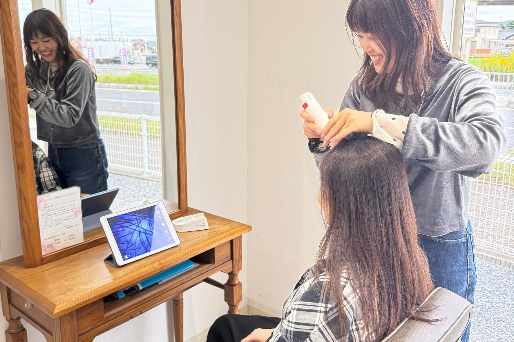 決まった時間の中でもたくさんの方に来てもらえるように、次回予約システムをお話ししてお客様が次回来店したい日を押さえてもらっています。