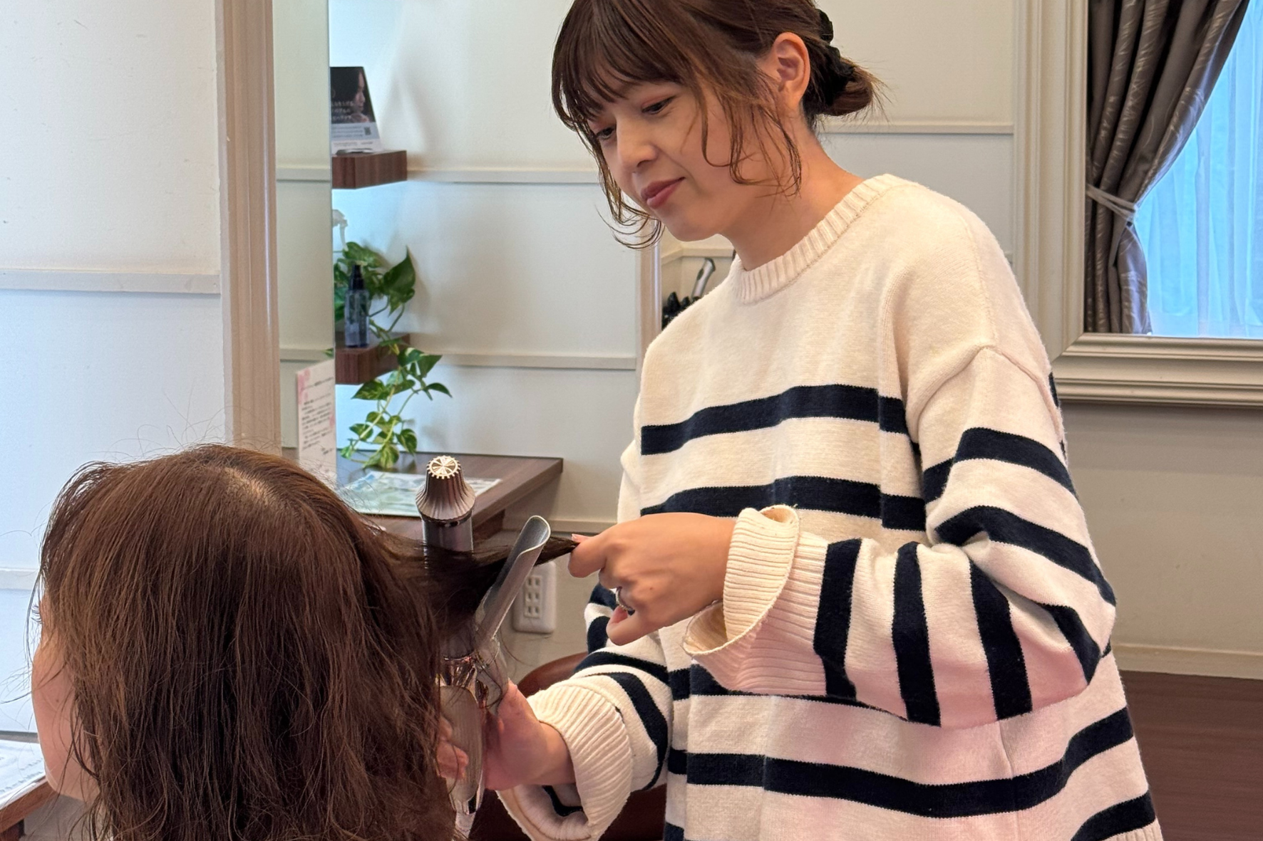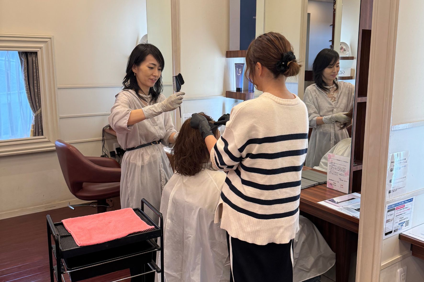 ブランクがあって最初は不安でしたが、自分のペースで美容師としての資格を活かし、また美容の仕事に携わる事が出来ました。家庭や子供の予定にも柔軟に対応してもらえるので、無理なく仕事と育児を両立できています。学びながら成長できる環境で毎日とても楽しく働いています。